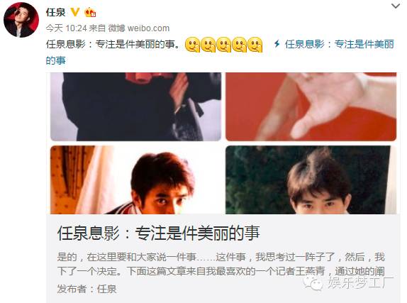 当演员任泉,逐渐变成任老板,或许大家早有预感,这一天的到来。3月17日,任泉本人在微博上宣布,自己将彻底告别影坛,正式息影。