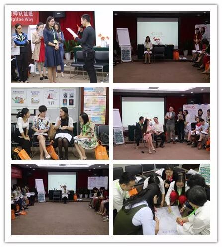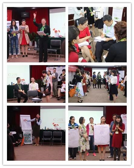 今天的主要任务是小组合作带领,大家是第一次带领活动,可能会有点紧张,谢丽尔导师注意到了这一点,同时很幽默的鼓励到:“你们看上去好严肃啊,是因为要带领活动了吗?大家还记得吗?错误是(等待学员的回答)”。大家异口同声的说:“学习的最好机会。”瞬间全场气氛轻松多了。各小组渐入佳境,大家慢慢变得放松、开心、学习中带领着活动,看看大家的精彩带领。