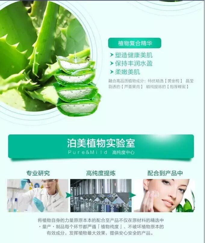 泊美鲜纯珍萃保湿系列选用法国产白百合精华、宁夏产黄金莓精华、墨西哥芦荟精华以及精制蜂蜜等成分,能深入渗透并包裹肌肤,减少肌肤内在的水润流失,提升肌肤自身提升滋润的保湿力,缔造丰盈、柔滑的肌肤触感。