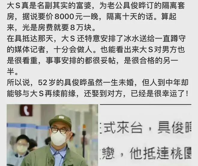 大S再婚的一个月后,她终于得以在媒体的注视下,见到了20年前的恋人、现在的老公具俊晔。