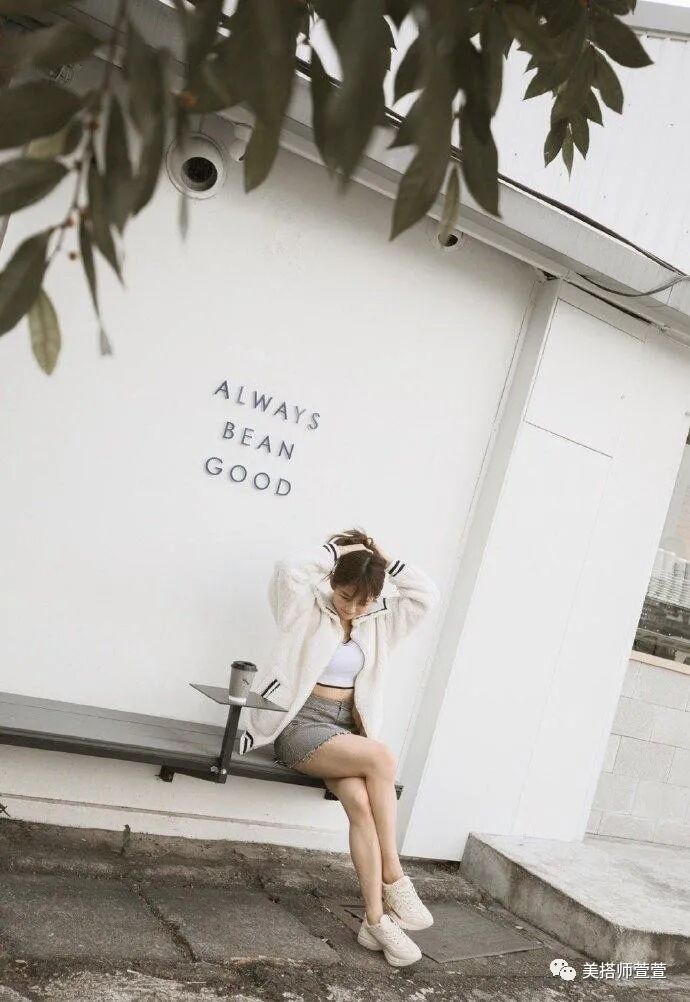 郭书瑶在日常穿搭中穿出了少女风,身穿学院风的白色外套,搭配白色文胸。