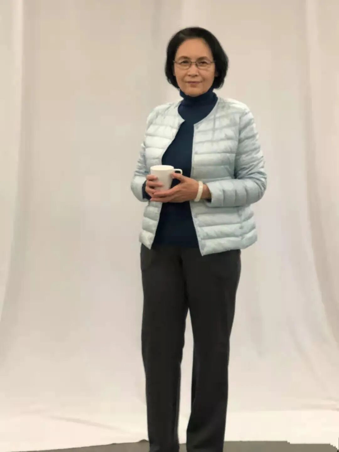 浅色羽绒服搭配黑色西裤,宋晓英老师这套羽绒服穿搭,干练知性又温柔。