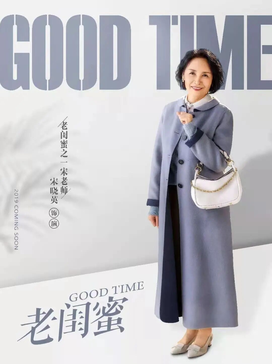 雾蓝色中长大衣搭配大象灰浅口单鞋,宋晓英老师这套大衣穿搭,知性又有高级感。