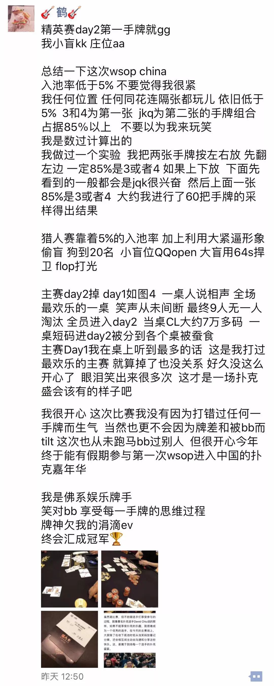 朋友圈是一个展示自己的舞台,而最近Mary朋友圈里WSOP CHINA 成为了高频出现的“网红”。