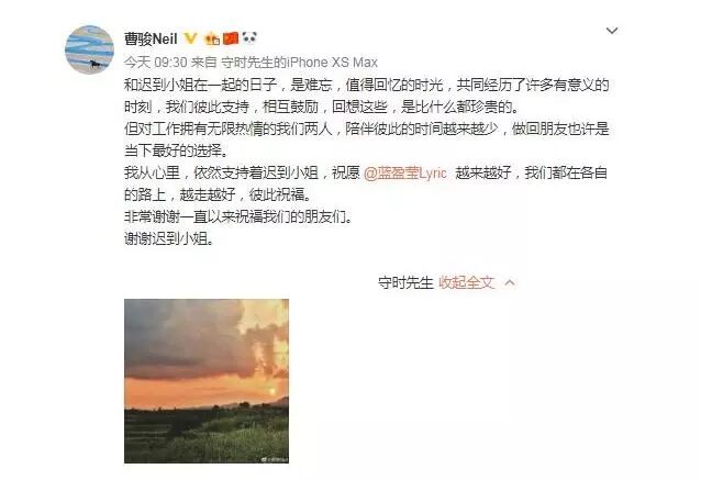 相恋3年的曹骏和蓝盈莹也先后发博宣布分手消息。本以为是娱乐圈的金童玉女,却没想到最后还是没能走到一起。