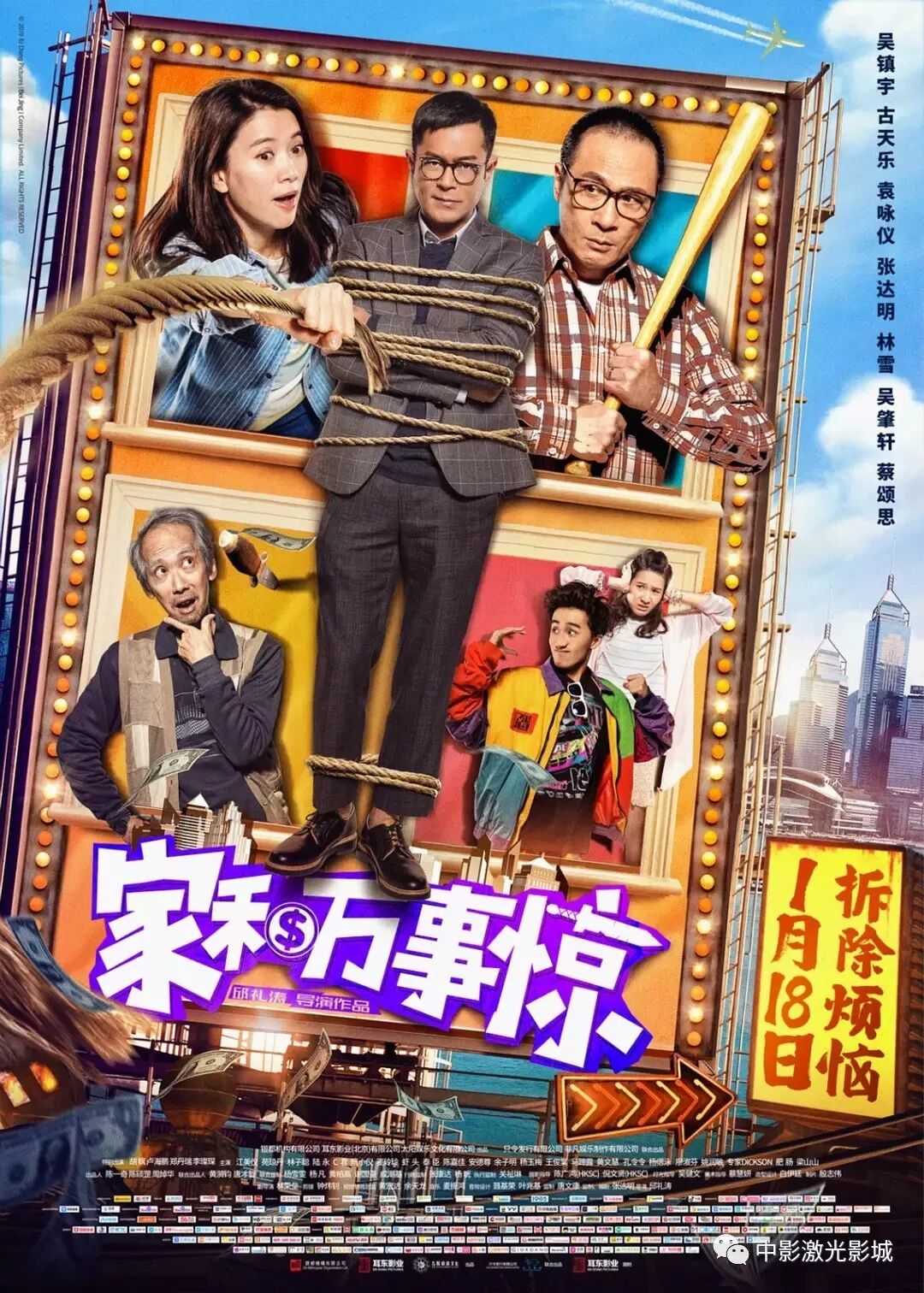 剧情:敦厚老实的中介卢伟文(吴镇宇 饰)与家庭主妇妻子淑贤(袁咏仪 饰)、失业愤青儿子(吴肇轩 饰)、沉迷网恋的女儿(蔡颂思 饰)及生活不能自理的父亲(张达明 饰)一家五口过着每月要还房贷的节衣缩食生活。鸡毛蒜皮的邻里纠纷、还不完的买房贷款、上有老下有小的尴尬处境,都成了这个家随时爆发争吵的源泉,而他们唯一舒缓焦虑的就是那一扇窗外的海景。可万万没想到的是,突然有一天,一块飞来广告牌完完全全阻挡到了整家人的视线,他们再也没有办法去舒缓压力。而这块广告牌的主人王小财(古天乐饰)却不以为然。解决无期、焦虑升级,卢伟文一家的疯狂计划就此展开……