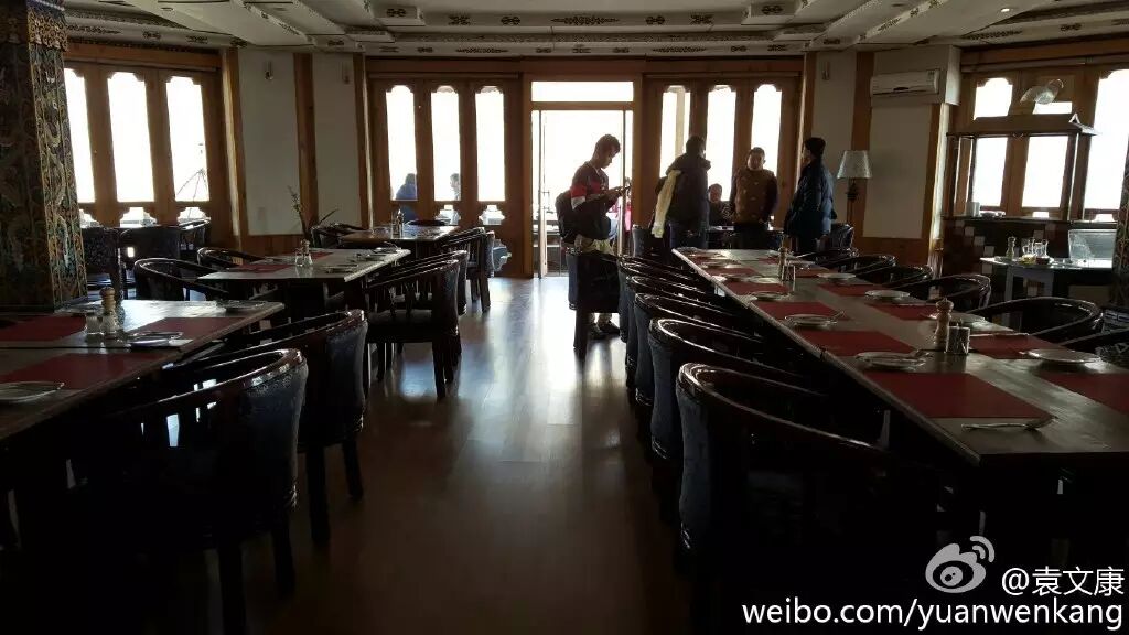 袁文康特别介绍了自己住的酒店:“这家酒店面山,位于一座村落的最高处。地面是石头的,有壁炉和地暖,但没有电视机。终于可以清静两天了。”“不丹的酒店是针对游客的,不丹本地人不会住。我们去正好遇上斋戒月。饭店须申请才可供应肉,但也只针对游客。”