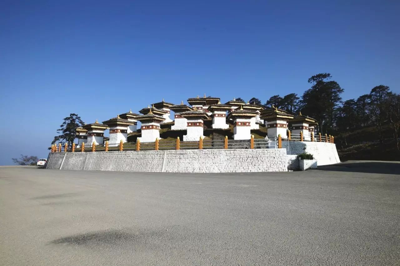 这里的海拔是3140米,在从廷布去往普纳卡宗的路上会经过多曲拉山口。正好天气晴朗,远远可以看到远处的雪山,就是喜马拉雅山脉。第四世王后在此修建了108座白塔,以纪念第四世国王胜利驱逐阿萨姆武装分子的胜利。