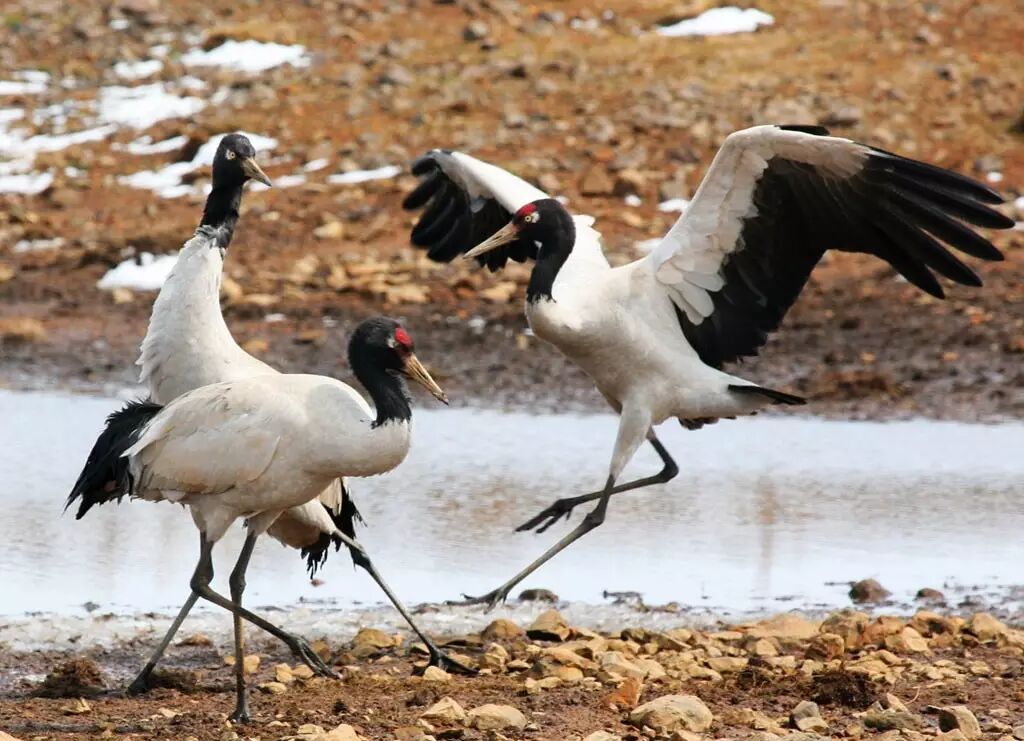 ▲ 没拍到近景,借网图说明一下黑颈鹤长什么样。