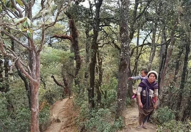 ▲ 下山路上遇见的当地妇女,背着孩子去朝圣——母亲真伟大。