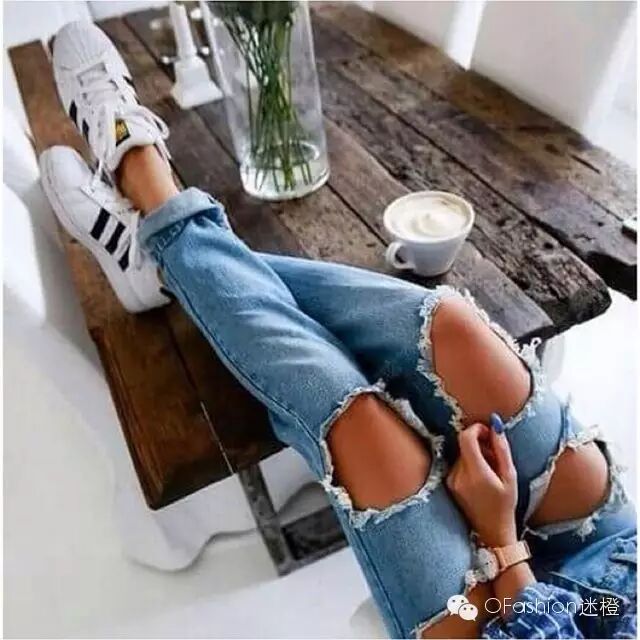 这款是Echo最喜欢的一款,相信那些深爱男友风的姑娘,也会喜欢吧。宽松的款式,不规则的破洞,随意搭配一下都能带出那一股深藏在骨子里的不羁感。不用费尽心思的打扮,轻轻松松就能享受潮爆的赶脚!