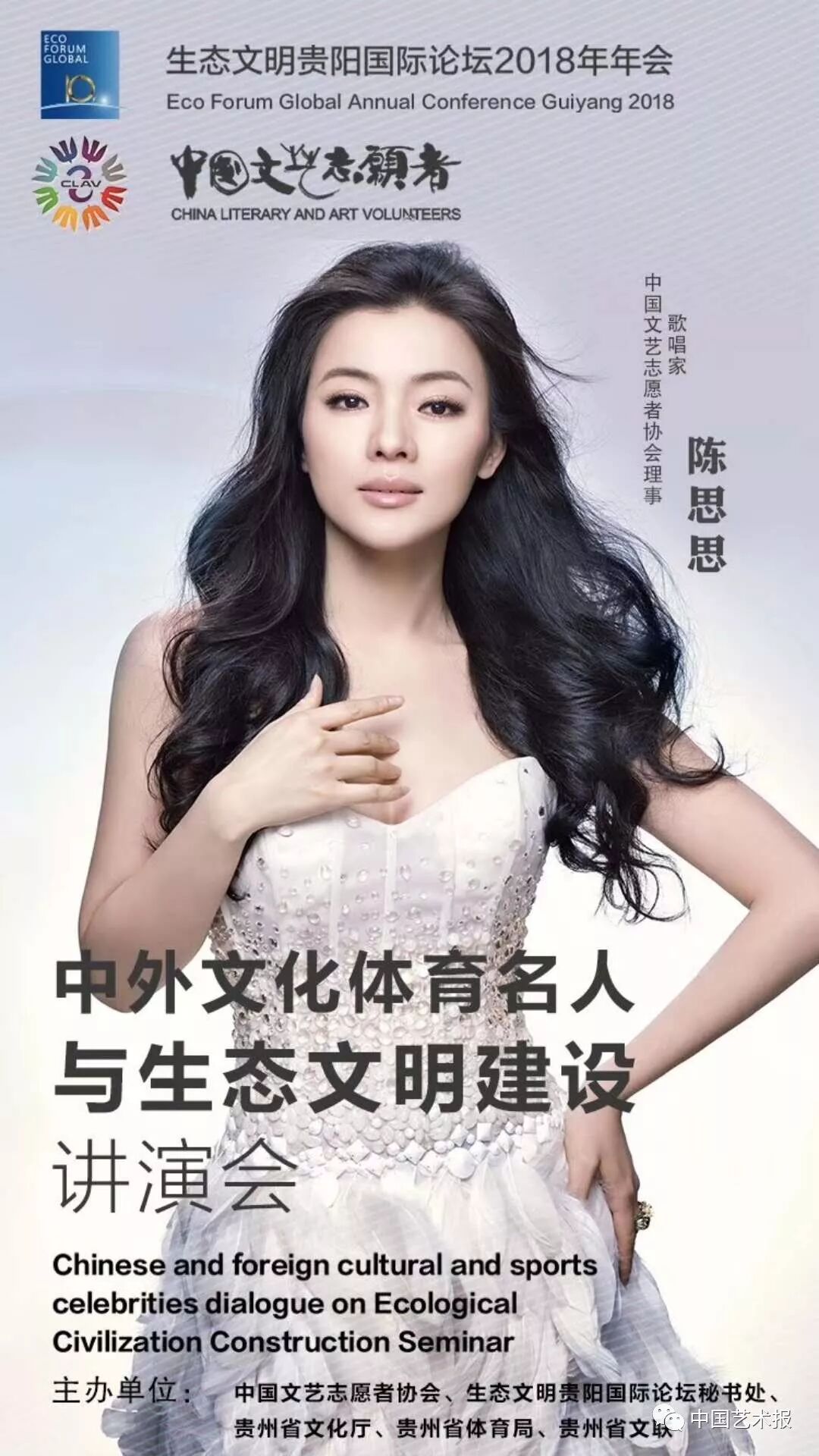 7月6日,著名歌唱家陈思思参加了由中国文艺志愿者协会、生态文明贵阳国际论坛秘书处、贵州省文化厅、贵州省体育局、贵州省文联在贵阳举办的“中外文化体育名人与生态文明建设”讲演会。