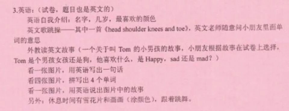 有的学校则是让家长写一封上千字的信,考察家长的文笔和家庭整体情况。