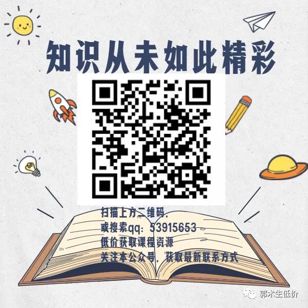 精品好课,你需要的我刚好有,并且愿意低价分享给您,需要此课程的同学记得联系我哦,更有海量学习资源与你分享~