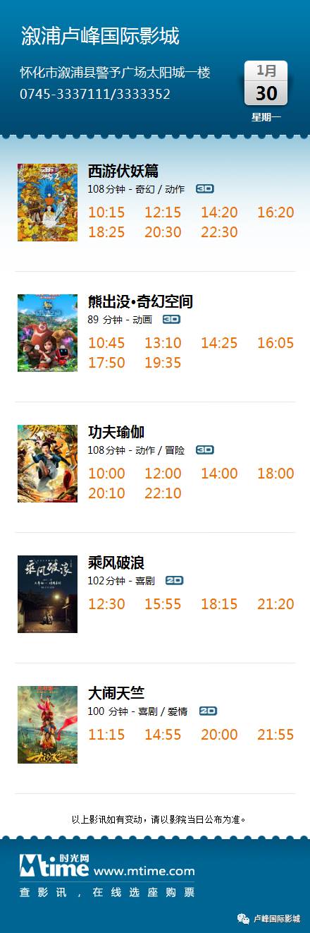 1月28日(大年初一)起,影城营业时间为10:00-24:00!