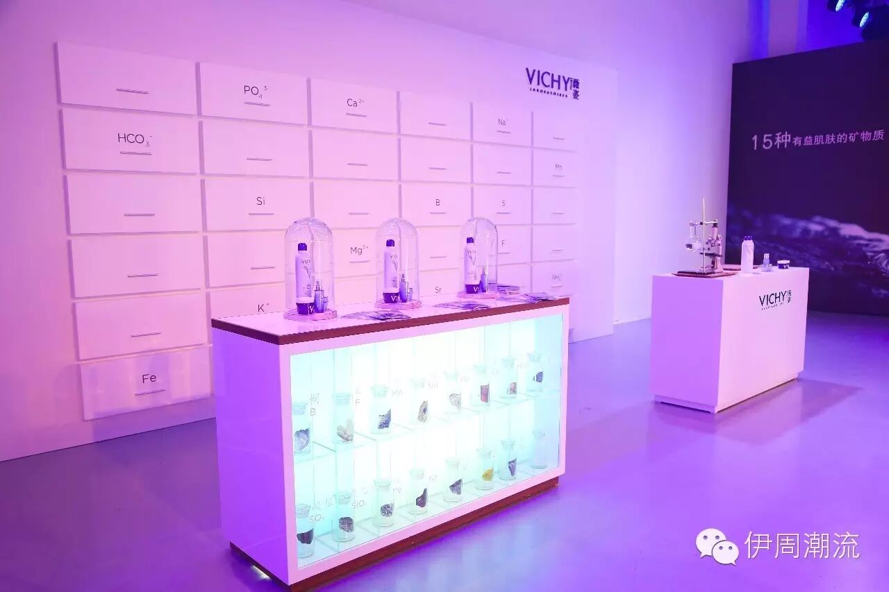 在展示区,来宾们可以多维度了解薇姿的悠久历史和经典产品。纯净的白色犹如权威的科学实验室,代表着薇姿在医学护肤领域不断探索的严谨态度;深沉的蓝色仿佛在述说法式风情和源远流长的小镇故事; 15种矿物元素化身为银色光点,散落在地面上,展现出源自火山深处的百分百天然纯净与澎湃能量。