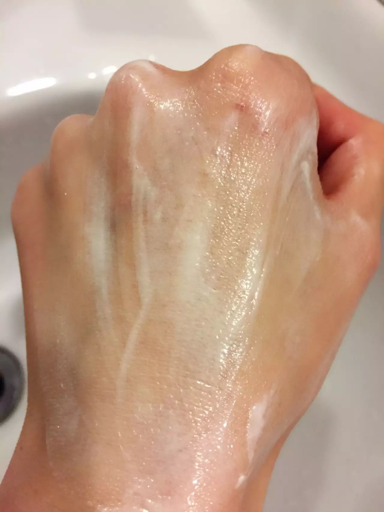 它的质地很特别,像乳液一样,一点都不厚重,小辣一度以为它不是面膜。涂抹时也很好涂开,水水润润的,10-15分钟后就可以清洗掉,会觉得皮肤嫩嫩的,好像肤色也变亮了。