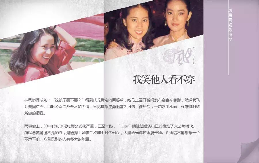 林凤娇的回答是:“这30万,假如我到香港谈恋爱成功了,我就不还了,也不回来拍你的戏了。假如我谈不成功,我就回来,拍戏,还钱。”——沉静依附的外表下多么目标明确、坚定决绝!交情深厚的左宏元答应了阿娇,但他没问更不知她的“恋爱”的对象就是成龙。