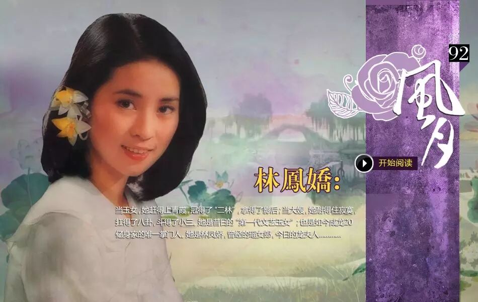 当玉女,她赶得上青霞,冠得了“二林”,拿得了影后;当大嫂,她耐得住寂寞,扛得了八卦,斗得了小三。她是昔日的“第一代文艺玉女”;也是如今成龙20亿身家的唯一掌门人。她是林凤娇,曾经的瑶女郎,今日的龙夫人。