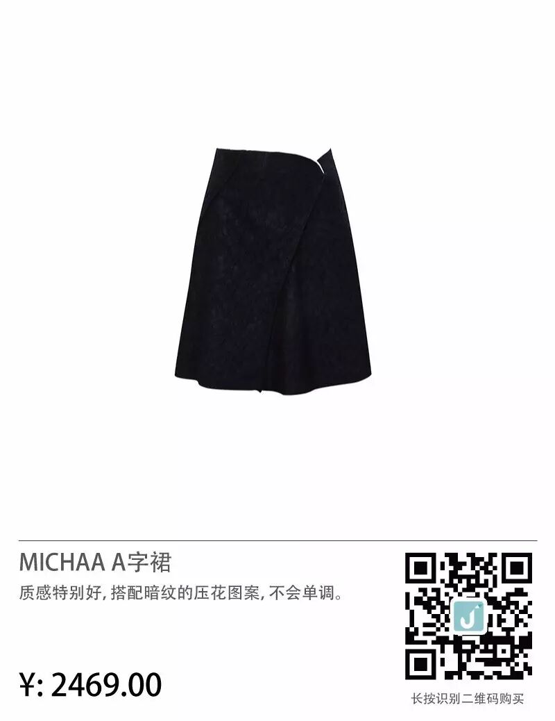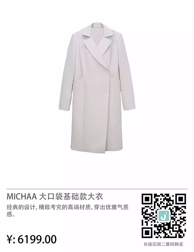 最后,给大家安利下文章开头全智贤欧尼代言的服装品牌MICHAA(美夏)。MICHAA属于韩国新生代的服装品牌,以优良的质地和优雅时尚的风格著称。虽然是新生品牌,却非常受时尚职场女性的喜爱,近几年销量一直保持韩国国内女装销售前三名。MICHAA一共分为两个系列:一个是主牌MICHAA,另一个是副牌it MICHAA,两个系列风格和价位稍有不同,但都非常适合成熟时尚的职场女性,鲸鱼小姐还给大家精心挑选了下面的几款超级值得买的单品哦!