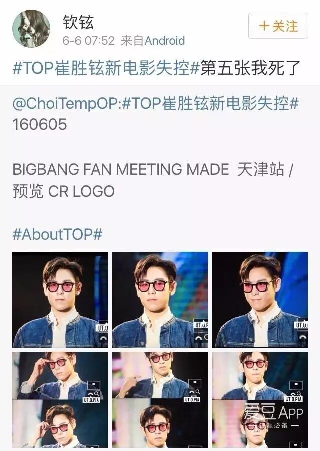 6日晚,在一则粉丝转发的TOP饭拍预览微博评论中,惊现一个亮眼的黄色大V账号,竟是火华社长刘烨在评论TOP:"好帅"。