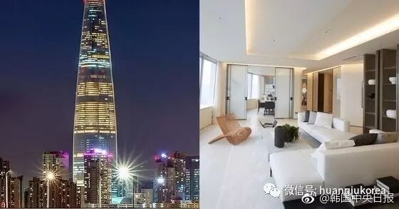 赵寅成所购买的Signiel Residences位于韩国最高的地标建筑-Lotte World Tower内,这座大厦也是世界第5高建筑。共129层,42~71层就是Signiel Residences,每坪(3.3㎡)售价7500万~8000万韩币。