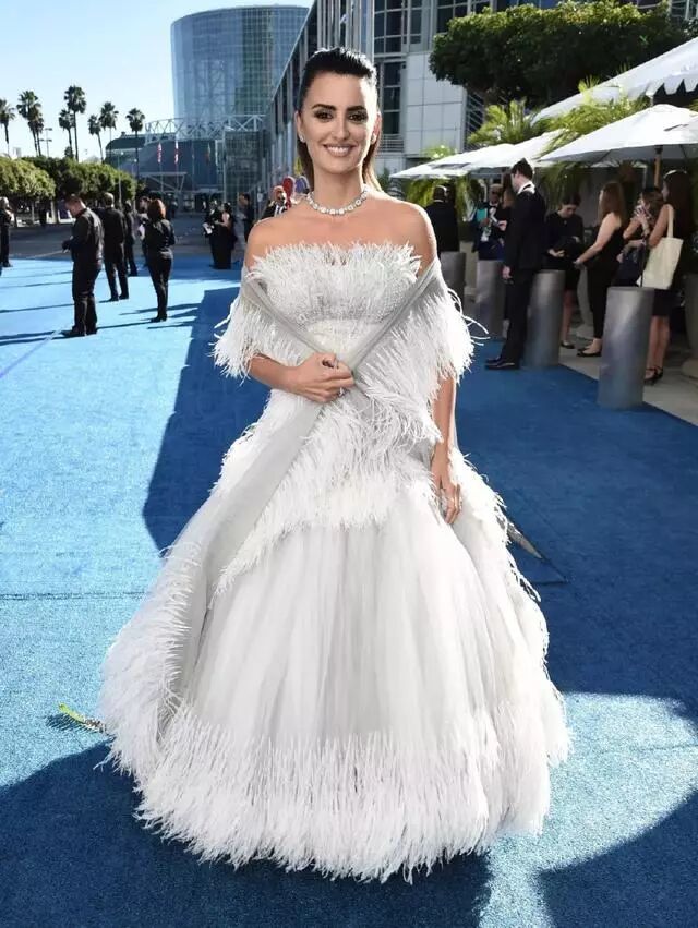 著名女演员Penélope Cruz身着带有飘逸羽毛的Chanel高定时装,在红毯上优雅的走着,白色的欧根纱作为了打底的材料,添上白绒绒的羽毛,显得格外的优雅端庄。简单干净的妆容配上Swarovski的项链,尽显仙女气质。这不,中秋节就要到了,这可能是嫦娥派来的仙女下凡巡视来了。