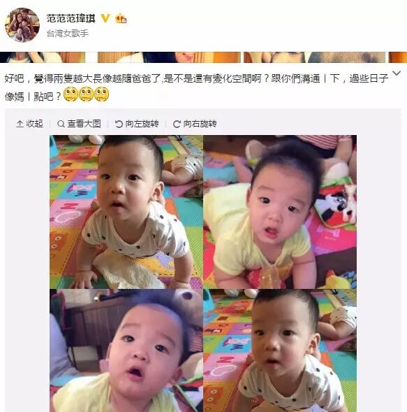 ▲口水风波后范玮琪依然发微博,与网友讨论儿子长相问题
