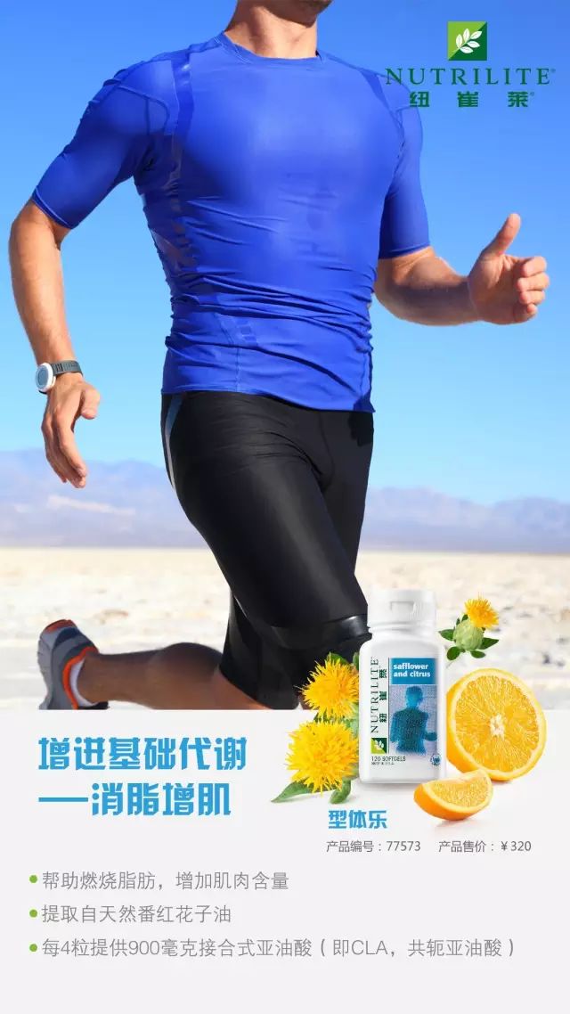 纽崔莱®型体乐,提取自天然番红花子油,帮助燃烧脂肪,增加肌肉含量。我的身材,我做主!