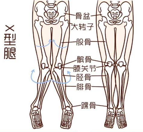因为经常保持这种坐姿,会导致大腿股骨内旋以及小腿胫骨外旋,变成我们常说的“X型腿”。