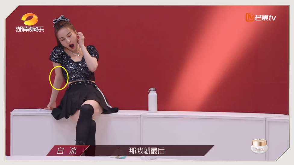 吴昕肘超伸的幅度不仅大,在节目中出现的频次也很高。经常被她用来支撑自己的身体,似乎已经成了习惯。