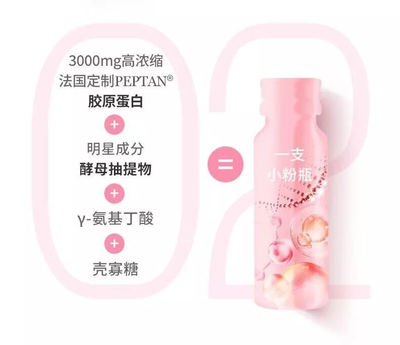 而“小粉瓶”所含的3000mg高浓缩法国定制PEPTAN®胶原蛋白不仅可以给肌肤深层补水,明星成分酵母抽提物中富含的谷胱甘肽还可以促进皮肤新陈代谢,让你的皮肤变得更加细腻有光泽,可以说是所有爱美小可爱的福音了。