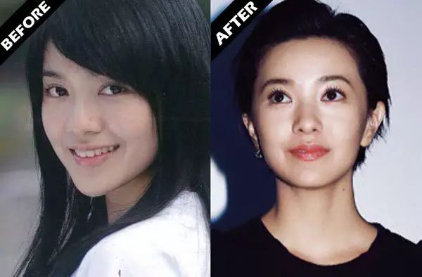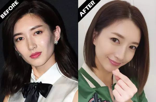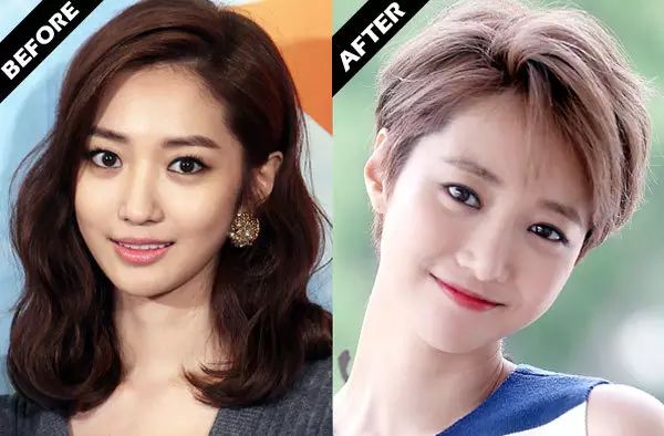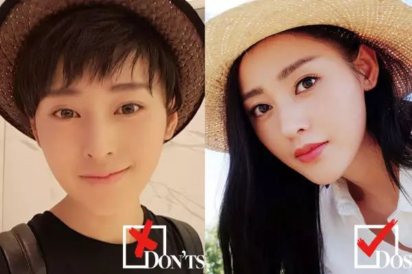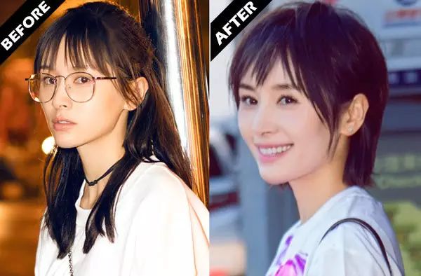 不信就来对比她在留短发和长发时的脸型:在较长发丝(右图)的衬托下,脸型无疑显得更娇小、更好看。