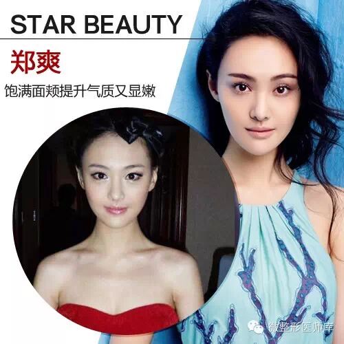 郑爽整容项目: 1.饱满面颊提升气质又显嫩 在《一起来看流星雨》的时候,郑爽高高瘦瘦的,清秀的小脸软绵绵的,但过于瘦削会显得法令纹明显,尤其在大笑的时候更显老气。后来她的脸蛋莫名地“肿”起来了,虽然表情僵硬,但拍照时面部平整,无需修图也很嫩。所以,上镜的首要条件是面颊饱满平滑,这点可以通过玻尿酸注射填充实现。 年轻MM的皮肤饱满弹润,是因为充满了胶原蛋白,想要维持饱满面庞的你应该多补充胶原蛋白的食物,同时使用能刺激胶原蛋白增生的保养品。 2.零眼袋打造魅力电眼 眼袋重的人,在昏暗的灯光下拍照会显老。郑爽早期的照片中,眼袋黑眼圈都很重,整个人看起来不够精神。但在最近的电视剧中,只需画一条细细的眼线就神采奕奕。关键就在于眼周平滑紧致,没有眼袋。不信你可以自拍下,眼袋真是上镜杀手!眼袋很难通过普通的保养品消除,那么,去眼袋手术是不二之选。 常见的去眼袋手术有以下几种:抽脂法(负压法)去眼袋、开刀法去眼袋、激光法去眼袋、射频消融法去眼袋、超声法去眼袋。不要等到眼袋形成了再去补救,勤涂眼霜、多做眼部按摩,少熬夜,这些都是预防眼袋的有效措施。 3.隆鼻提升面部轮廓 郑爽自己承认隆鼻,后来又取出假体,如此反复,看现在的模样,应该是又做了隆鼻手术。鼻梁高挺,气质一下子就提升了。以前小巧的塌鼻子稚嫩可爱,隆鼻后摇身变成时尚都市女。 隆鼻可谓整容必做项目,最常见的有假体隆鼻和注射隆鼻了,区别就在于维持时间的长短了,就安全性而言,注射隆鼻风险较小,但一般只能维持6-12个月左右。 4.开眼角让眼神变明亮 郑爽整容前后的差距确实挺大的,除了以上这些项目,她应该还做过开内眼角手术,因为眼睛形状都变了。化妆后眼神更明亮,上镜自然好看多了!开眼角有个通病,那就是不化妆的时候眼形怪怪的,笑起来也很明显!不想动刀的话,应该多保养眼部的娇嫩肌肤,预防细纹,不论眼睛大小,明亮有神的双眸才是最美的! 早在整容之前,郑爽就对整容后要面对的各种议论有心理准备:“有人说我变更成熟了,也有人说没有以前好看。其实美和丑本身就没有一个量化的标准,别人说不好也不要太在意,只要你最自己能有个正确的评价即可。”