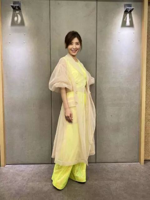 一身荧光黄的连体裤,让人眼前一亮。荧光黄色的色调也衬托着苏慧伦的皮肤更加的白皙,而下半身阔腿裤的设计也让苏慧伦的大长腿看起来有一米九!更让人没有想到的是,她在外面还搭配了一件米色的薄纱外搭。有一种非常高级的时尚感,让人过目不忘。在这样的穿搭下的苏慧伦真的是尽显青春活力!