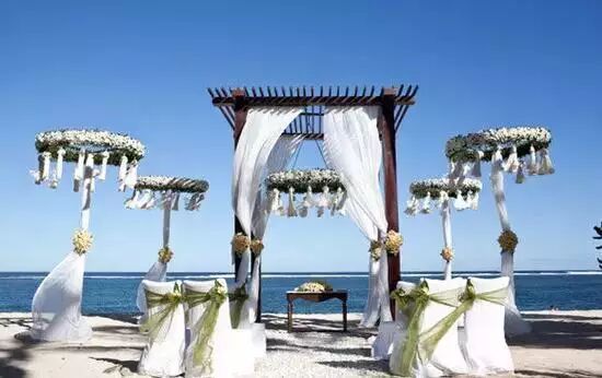 说道巴厘岛的顶级奢华酒店,以传统皇家风格为基调的圣瑞吉酒店可谓是首屈一指。唯美白沙滩婚礼,是整个巴厘岛最为高贵典雅的西式婚礼。独特的花环鲜花装饰,加上浪漫的白色帷幕,与蓝天映衬相得益彰。圣瑞吉斯的唯美沙滩婚礼,更是贴心地为新人准备了一晚滨海别墅住宿,让新人能够在精美的热带雨林式的私家别墅花园内,得到最精心的服务。