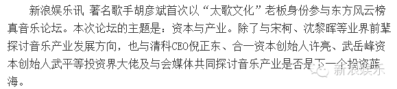 这还不算完,胡彦斌还开了自己的公司,太歌文化。