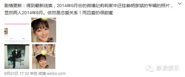 根据大V所说,这时候胡彦斌和纪莉莉仍是恋爱关系