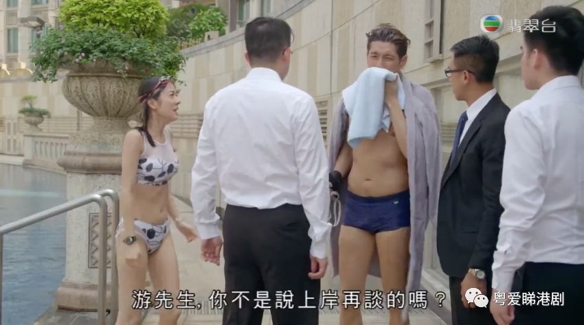 剧情讲到诗咏為了接近大老板袁文杰身,特地去到对方常去的私人会所游泳池,趁大老板游水时她就在旁边游背泳进諫!这一幕诗咏虽然仍在水中,不过已隐约见到其丰满上围及白滑长腿!