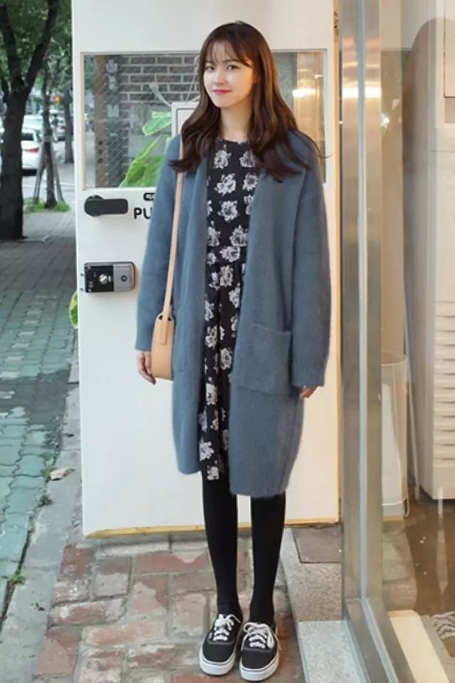 推荐搭配look2、中长款毛衣开衫&连衣裙&球鞋