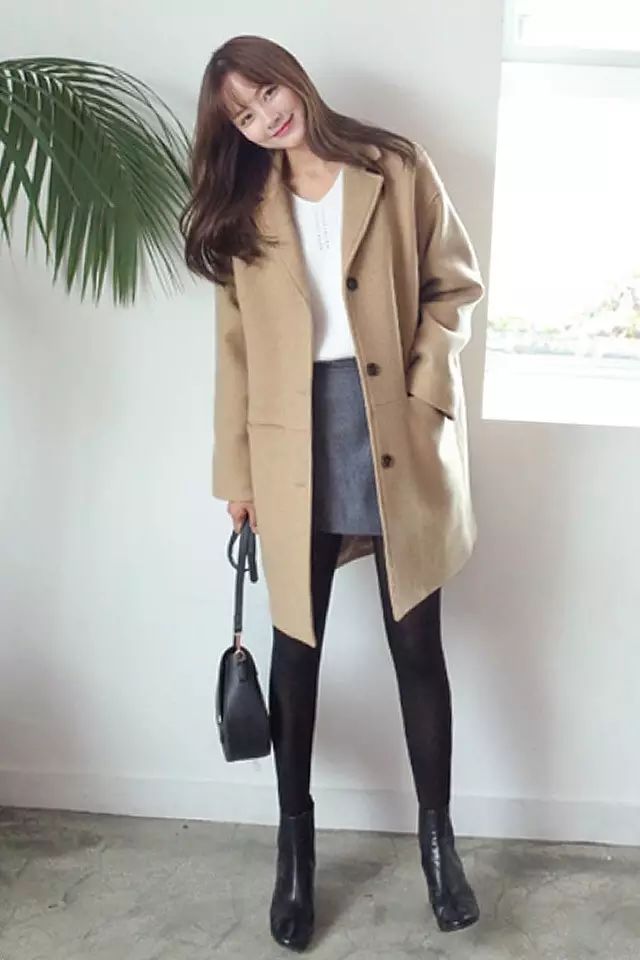15度左右必备单品:呢大衣、打底衫、半裙、加厚压力袜