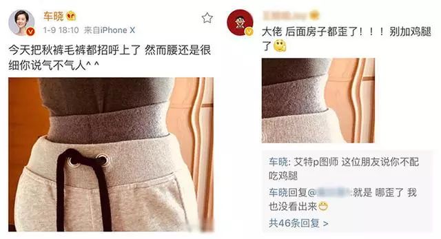 车晓在微博发了一张自拍照,瓜哥初看以为是手臂,没想到是腰,居然和脸一样瘦,细心的网友就发现,原来是P过的,车晓开玩笑地回应:没看出来。看来车晓是故意发P过的照片,网友被套路了一把。