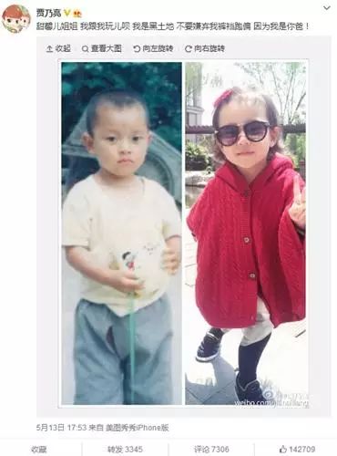 前不久看到了乃爸上传的旧照,和甜馨做了一张对比照,真的神似。神经乃爸也正经不过3秒,这不又来侃一侃自家的女儿,要不是照片这么像,都怀疑贾乃亮是不是甜馨亲爹了!