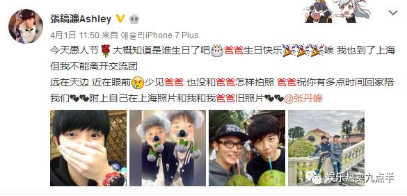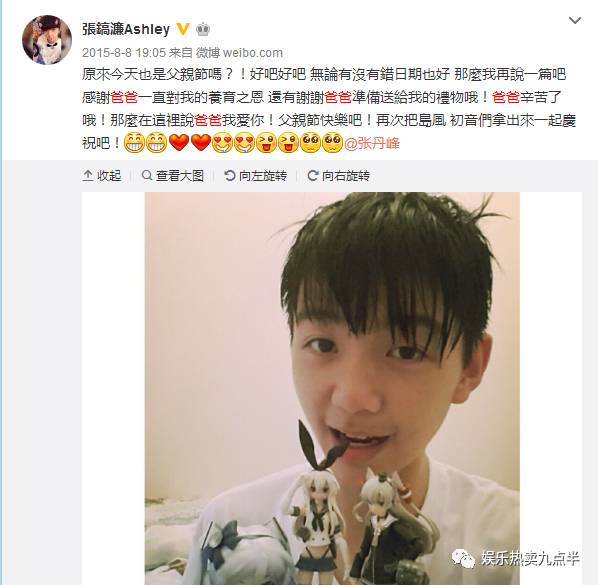 张镐濂直接把张丹峰叫“爸爸”,在微博记录了很多和爸爸的相处瞬间。