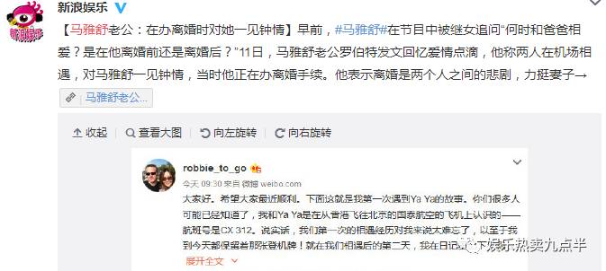 之后马雅舒老公罗伯特在微博上详细叙述了遇见马雅舒的过程,称当时正在跟前妻办理离婚手续。