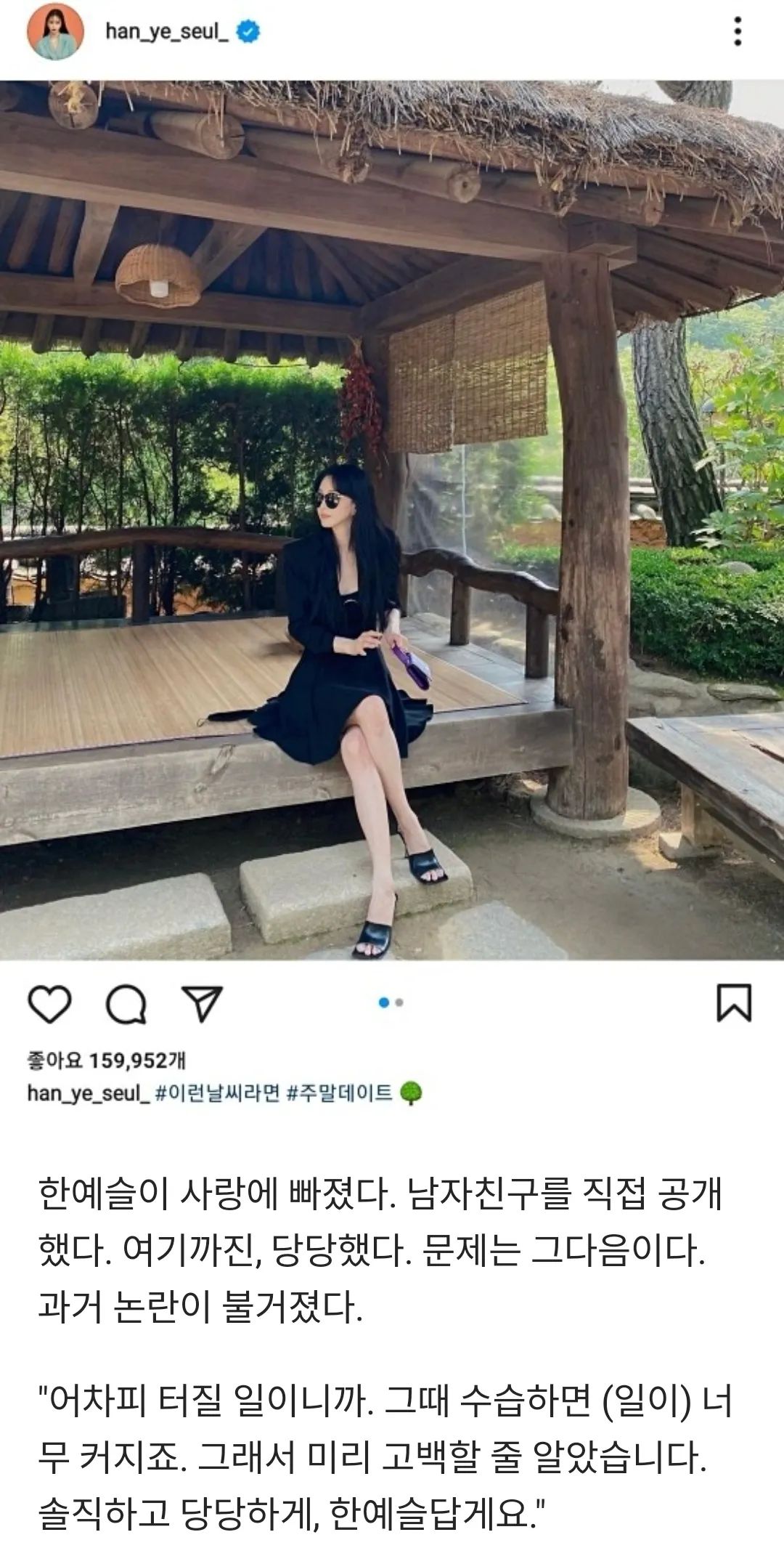 韩艺瑟选择了将恋情公开,选择了自由意志。但随后的责任也等待着她。(归因于男朋友)被攻击,她可以更自由地在人们面前诉苦。