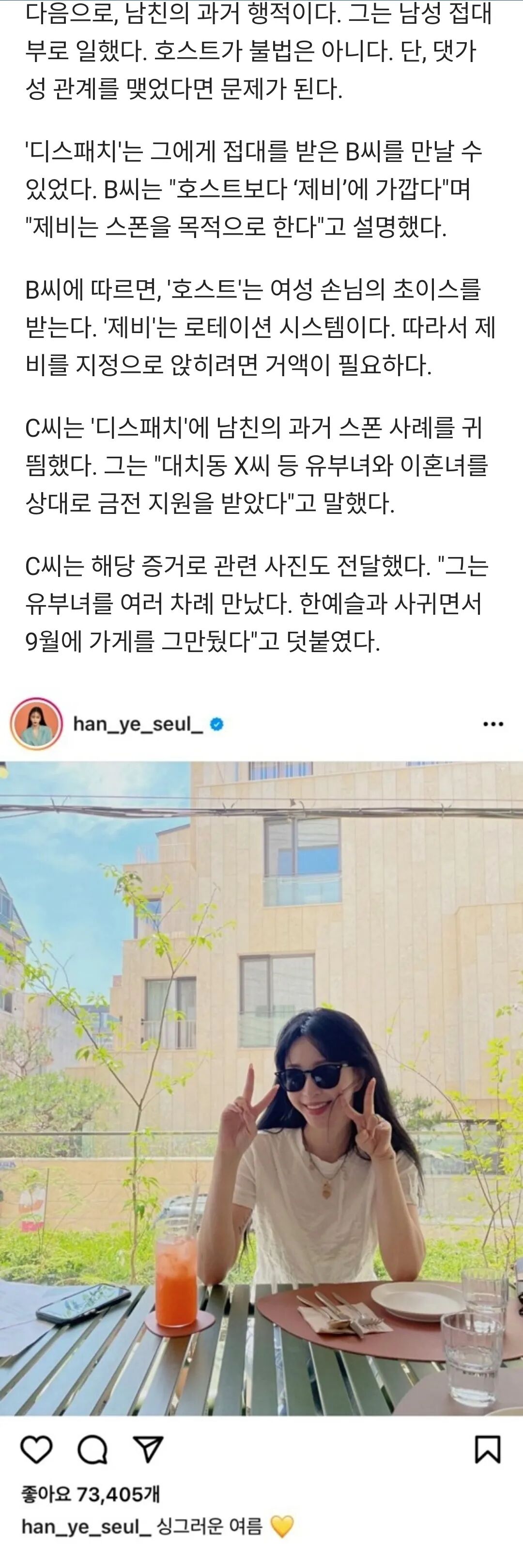C某则向D社示意,韩艺瑟男友过去被保养过。他是“被大峙洞X女士等有夫之妇和离婚女人们保养的”。