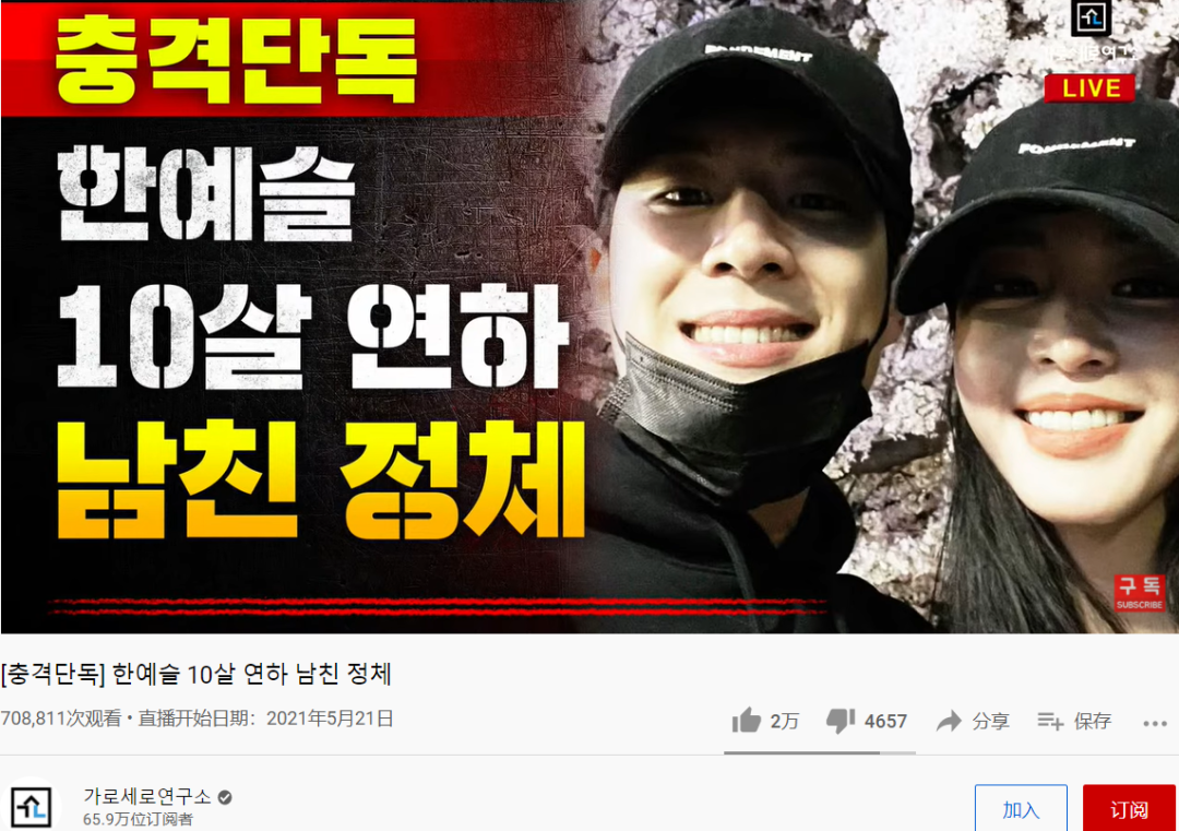 韩国资深记者金龙浩,在韩国横竖研究所和自己的油管频道上,开始了对于韩艺瑟和她男友的连环阻击。据说一共有四个阶段。