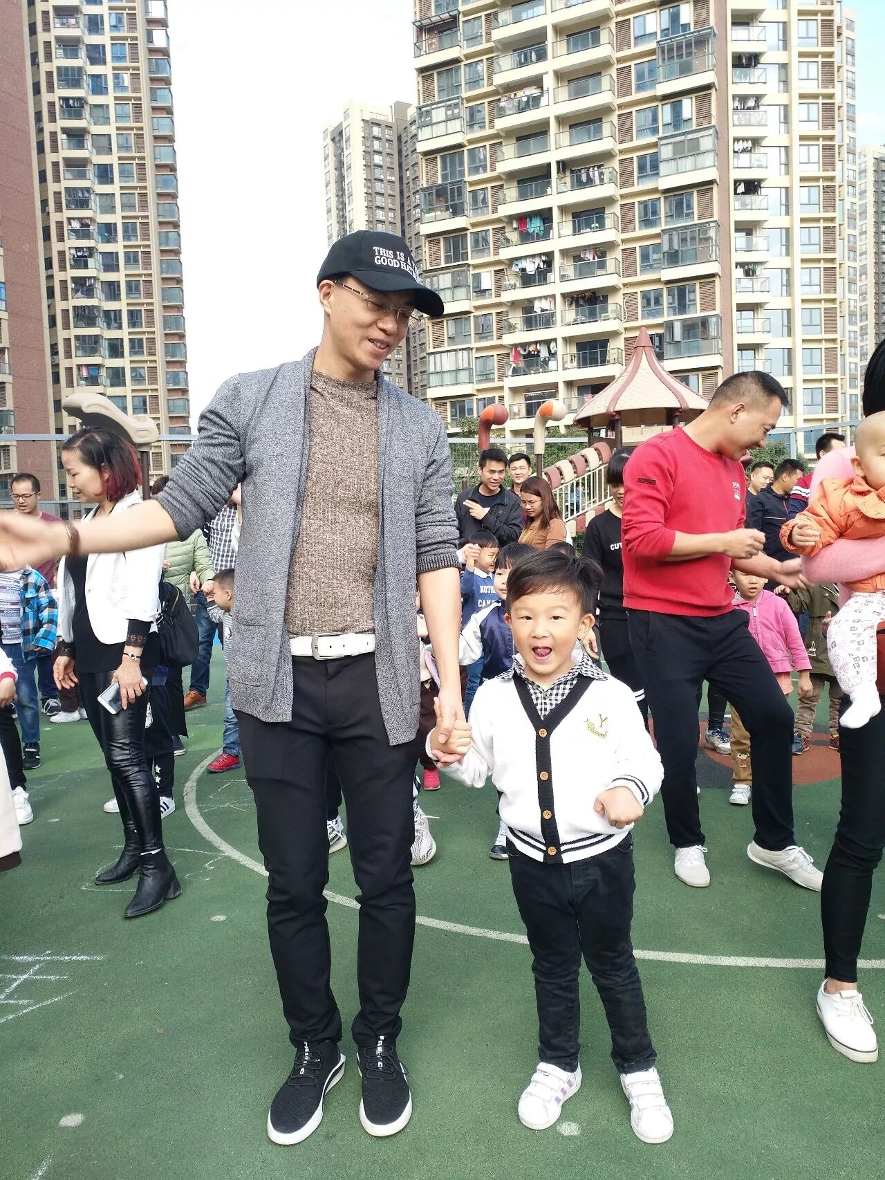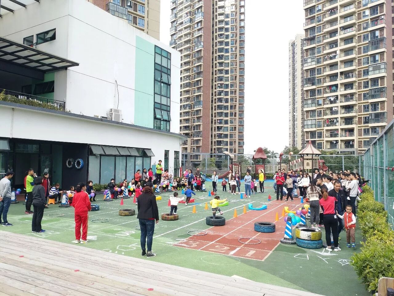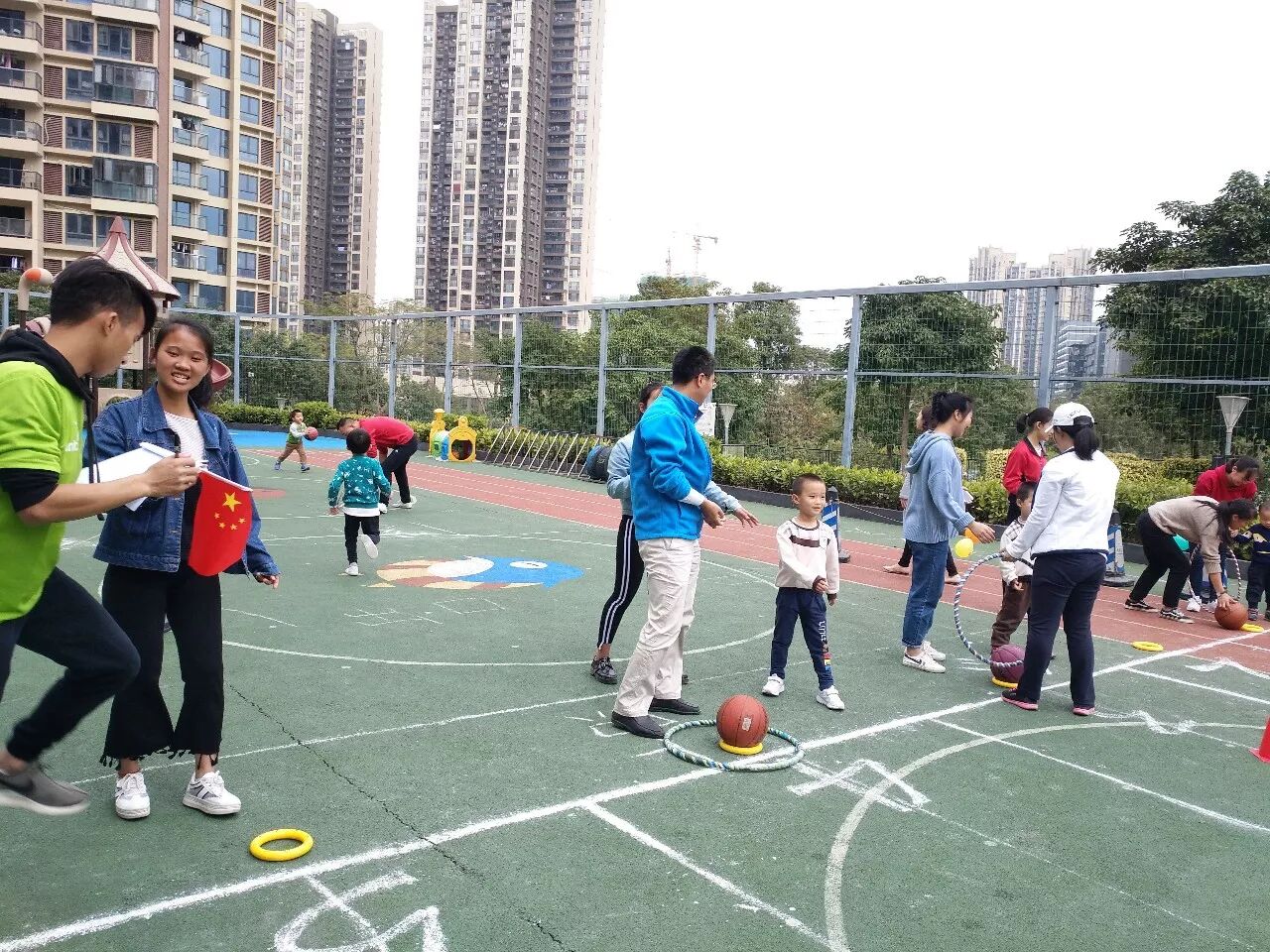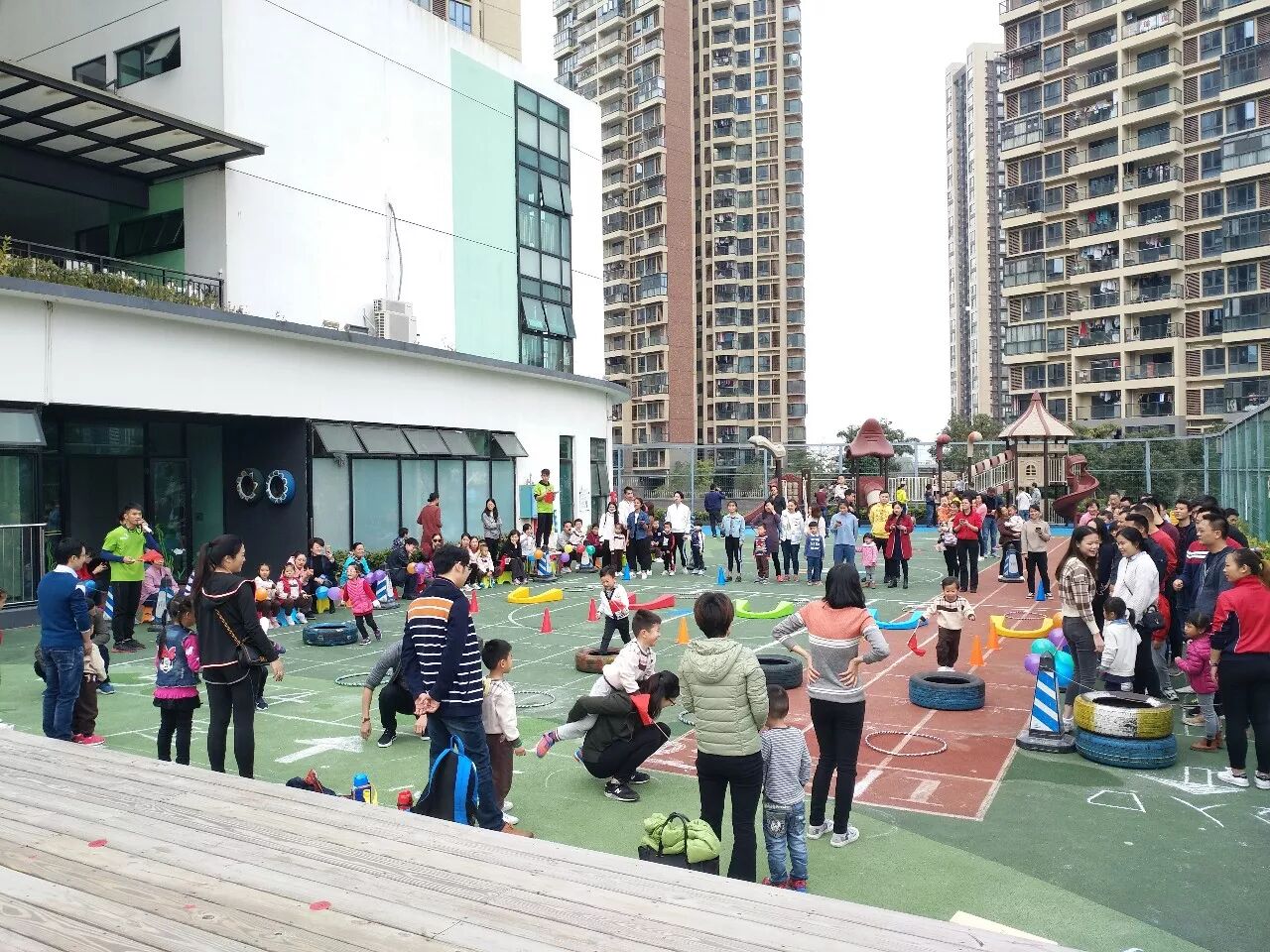 2018年1月4日上午,万科璞悦山幼儿园开展了“童心、 童梦、 共成长”冬季亲子 运动会亲子比赛——旗开得胜、赶小猪回家。幼儿园内人气高涨,孩子们拉着家长的手来到了我们的操场,小小运动员们整装待发,爸爸妈妈们热情洋溢,跟随着老师的带动下进行了全场热身环节合着欢快的音乐舞动起来,运动赛事拉开了序幕。接下来看看我们精彩的比赛过程吧!