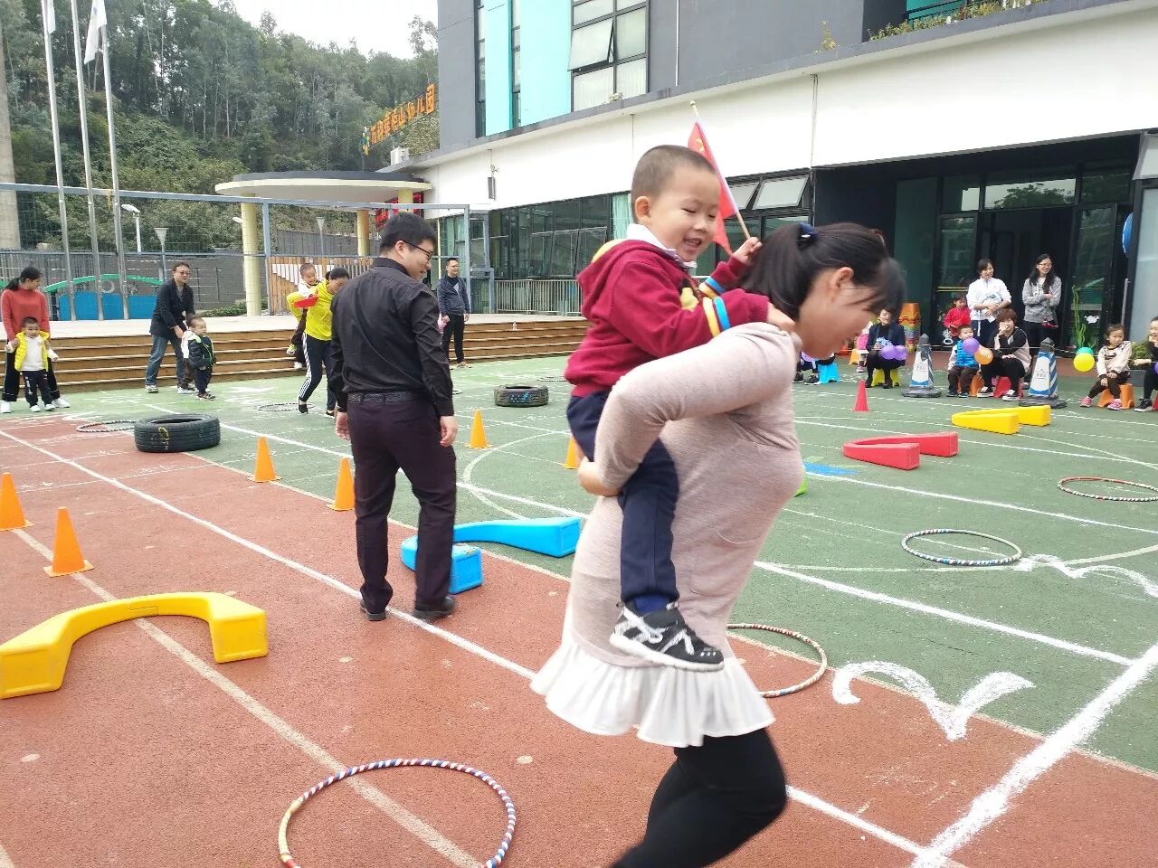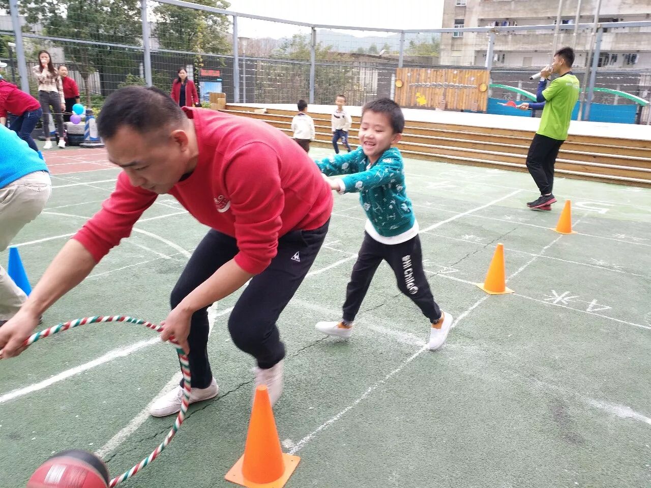 孩子们的成长离不开家长们在人生道路上的指引,孩子们的快乐离不开家长们的陪伴,孩子们的健康离不开家长们的细心照顾,孩子们的成功,离不开家长们赞美和认可。运动场上家长和孩子的默契配合,旁边啦啦队的激情呐喊、鼓励,参加亲子比赛的孩子与家长都表现得非常棒,在孩子与家长的欢声笑语中最后本次“亲子赛——旗开得胜、赶小猪回家”比赛取得圆满成功。
